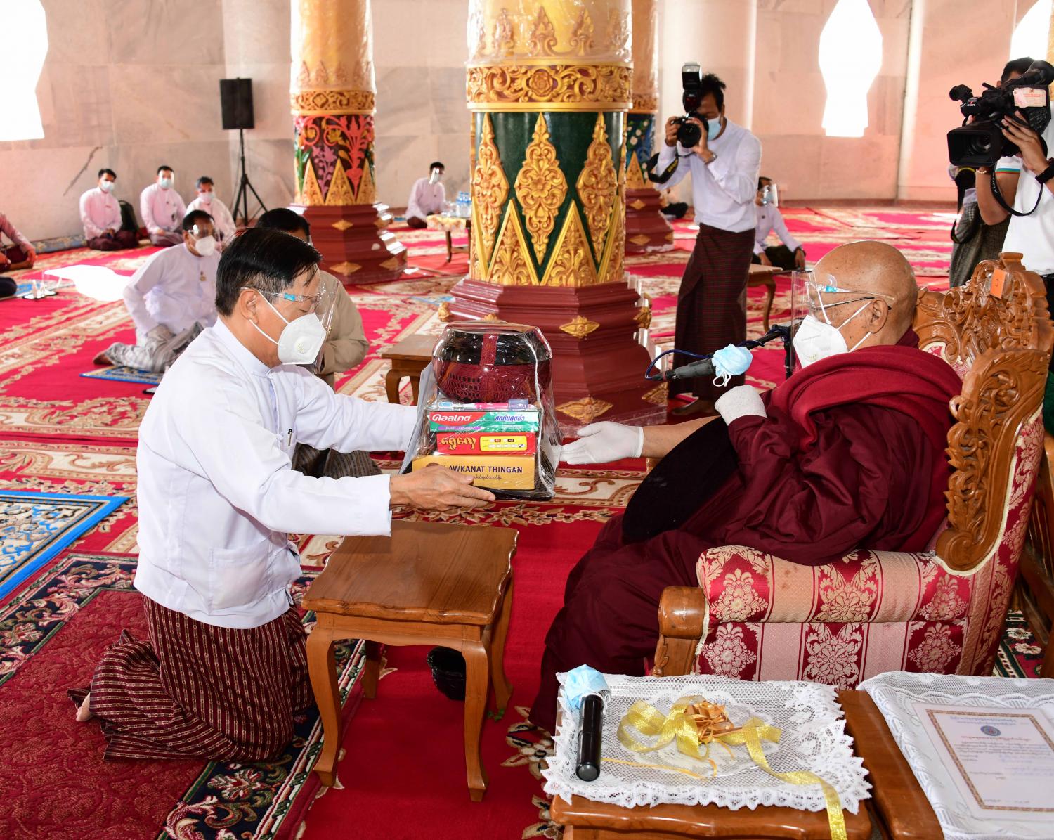 အခမ်းအနားသို့ လယ်ဝေးမြို့ ပေါက်မြိုင်ပရိယတ္တိစာသင်တိုက် ပဓာနနာယက အဘိဓဇမဟာရ ဋ္ဌဂုရု ဘဒ္ဒန္တဇနိန္ဒ အမှူးပြုသော ဆရာတော်၊ သံဃာတော်များ ကြွရောက် တော်မူကြပြီး သာသနာရေးနှင့် ယဉ်ကျေးမှုဝန်ကြီးဌာန ပြည်ထောင်စုဝန်ကြီး သူရဦးအောင်ကို၊ နေပြည်တော် ကောင်စီ ခေတ္တဥက္ကဋ္ဌ ဦးအောင်မြင်ထွန်း၊ ဒုတိယဝန်ကြီး ဦးကြည်မင်း၊ အမြဲတမ်းအတွင်းဝန် ဦးထွန်းအုံ၊ ဝန်ကြီးဌာနအောက်ရှိ ဦးစီးဌာနများမှ ညွှန်ကြားရေးမှူးချုပ်များ၊ ဂေါပကအဖွဲ့ဝင် များနှင့် တာဝန်ရှိသူများ တက်ရောက်ကြည်ညိုကြသည်။