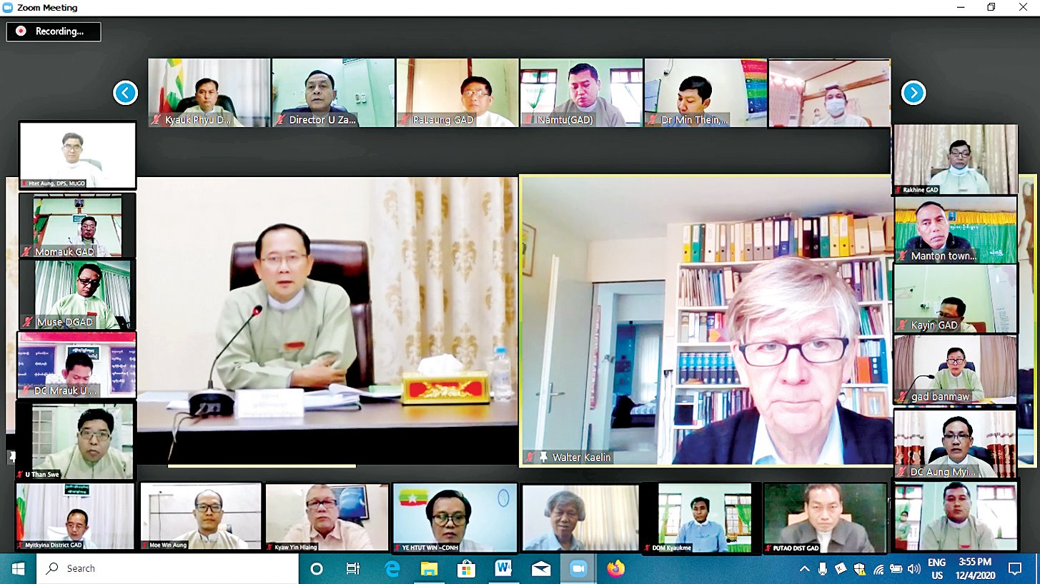 ပြည်တွင်းနေရပ်စွန့်ခွာသူများ ပြန်လည်နေရာချထားရေးနှင့် ယာယီခိုလှုံရေးစခန်းများ ပိတ်သိမ်းရေးဆိုင်ရာ အမျိုးသားအဆင့် မဟာဗျူဟာ ပါလုပ်ငန်းစဉ်များ ဆောင်ရွက်ရာတွင် အထောက်အကူပြုနိုင်ရေးအတွက် သက်ဆိုင်ရာ လုပ်ငန်း ကော်မတီများ၌ လက်တွေ့အကောင်အထည်ဖော် ဆောင်ရွက်နေသည့် ပြည်ထောင်စု အစိုးရ အဖွဲ့ရုံးဝန်ကြီး ဌာနနှင့် လူမှုဝန်ထမ်း၊ ကယ်ဆယ်ရေးနှင့် ပြန်လည်နေရာချထားရေးဝန်ကြီးဌာနတို့မှ တာဝန် ရှိသူများ ပါဝင်သည့် အလုပ်ရုံဆွေးနွေးပွဲကို ပြည်ထောင်စုအစိုးရအဖွဲ့ရုံးဝန်ကြီးဌာန ပြည်ထောင်စု ဝန်ကြီး၏ လမ်းညွှန်မှုဖြင့် ဒီဇင်ဘာ ၃ ရက်မှ ၄ ရက်အထိ ဗီဒီယိုကွန်ဖရင့်စနစ်ဖြင့် ကျင်းပသည်။