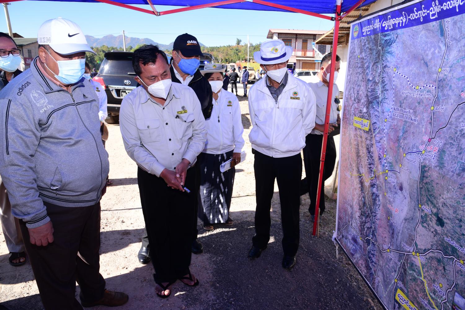ရှမ်းပြည်နယ်အစိုးရအဖွဲ့ ပြည်နယ်ဝန်ကြီးချုပ် ဒေါက်တာလင်းထွဋ်၊ ပြည်နယ်လွှတ်တော်ဥက္ကဋ္ဌ ဦးစိုင်းလုံးဆိုင်၊ ပြည်နယ်စိုက်ပျိုးရေး မွေးမြူရေးနှင့် ဆည်မြောင်းဝန်ကြီး ဦးစိုင်းလုံကျော်၊ ပြည်နယ် လမ်းပန်းဆက်သွယ်ရေးဝန်ကြီး ဦးခွန်ရဲထွေး၊ ပြည်နယ်သယံဇာတနှင့် သဘာဝ ပတ်ဝန်းကျင် ထိန်းသိမ်းရေးဝန်ကြီး ဒေါက်တာညီညီအောင်၊ ပြည်နယ် စည်ပင်သာယာရေးဝန်ကြီး ဦးစိုင်းစွံဆိုင်း၊ ဗမာ တိုင်းရင်းသား လူမျိုးရေးရာဝန်ကြီး ဒေါက်တာ အောင်သန်းမောင်၊ ပြည်နယ်ဥပဒေချုပ် ဦးတင်ဦး၊ အစိုးရအဖွဲ့ အတွင်းရေးမှူး ဦးနေလင်း နှင့် တာဝန်ရှိသူများသည် ဒီဇင်ဘာ(၁၃)ရက် နံနက်(၉)နာရီခွဲက တောင်ကြီးမြို့ရှောင်လမ်းဖြစ်သည့် ရွှေညောင်-ထီရီ(မွေးမြူရေးဇုန်)-လင်ကွင်း-ညိုမီး (၄)မိုင် ကွေ့လမ်း (မြို့ရှောင်လမ်း) (မိုင်၀/၀-၁၇/၄) တည်ဆောက်ခြင်းစီမံကိန်းအား ကွင်းဆင်းကြည့်ရှု့ရာ ပြည်နယ် လမ်းပန်း ဆက်သွယ်ရေးဝန်ကြီး ဦးခွန်ရဲထွေးနှင့် လမ်းဦးစီးဌာနမှ တာဝန်ရှိသူများက ရှင်းလင်းကြကြောင်း သိရသည်။