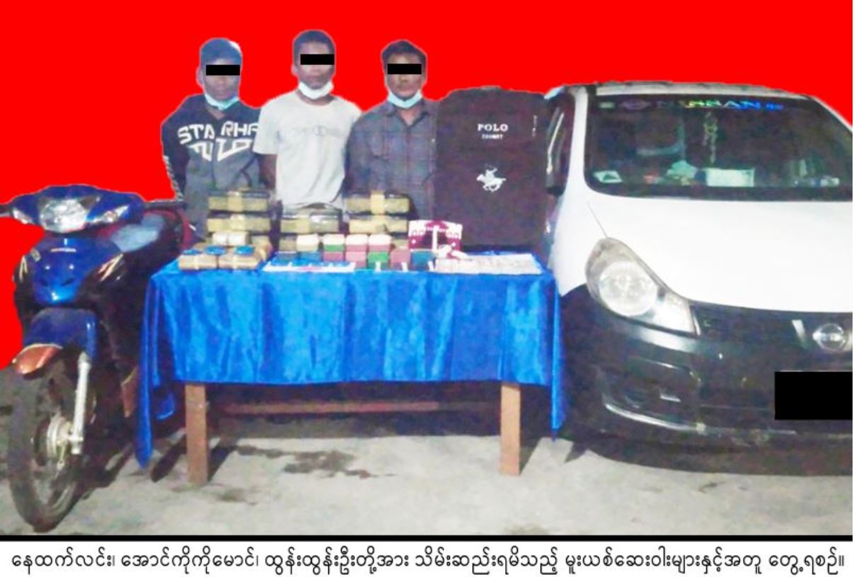 ထို့အတူ ညနေ ၄ နာရီတွင် မူးယစ်ဆေးဝါး တားဆီးနှိမ်နင်းရေး ရဲတပ်ဖွဲ့မှ တပ်ဖွဲ့ဝင်များသည် ပုသိမ်ကြီးမြို့နယ်၊ ကျောက်ချောကျေးရွာအနီးရှိ ၁၆ မိုင်စစ်ဆေးရေးဂိတ်တွင် ထွန်းထွန်းဦး မောင်းနှင်ပြီး အောင်ကိုကိုမောင် လိုက်ပါလာသော AD VAN အမျိုးအစားမော်တော်ယာဉ်အား ရပ်တန့်စစ်ဆေး ရှာဖွေရာ ယာဉ်နောက်ခန်းရှိ ခရီးဆောင်အိတ်အတွင်းမှ ဘိန်းဖြူ သုည ဒသမ ၉၉ ကီလိုနှင့် စိတ်ကြွရူးသွပ်ဆေးပြား ၂၉,၇၀၀ တို့ကို သိမ်းဆည်းရမိခဲ့ပြီး ကွင်းဆက်အရ ည ၇ နာရီ ၄၅ မိနစ်တွင် ရမည်းသင်းမြို့နယ်၊ ရန်ကုန်-မန္တလေး အမြန်လမ်းမကြီး၊ မိုင်တိုင်အမှတ်(၂၄၅/၃)အနီးတွင် နေထက်လင်းကို ထပ်မံဖမ်းဆီးရမိခဲ့သဖြင့် ၎င်းတို့အား မူးယစ်ဆေးဝါးနှင့် စိတ်ကိုပြောင်းလဲစေသော ဆေးဝါးများဆိုင်ရာ ဥပဒေအရ အရေးယူထားကြောင်း သိရသည်။
