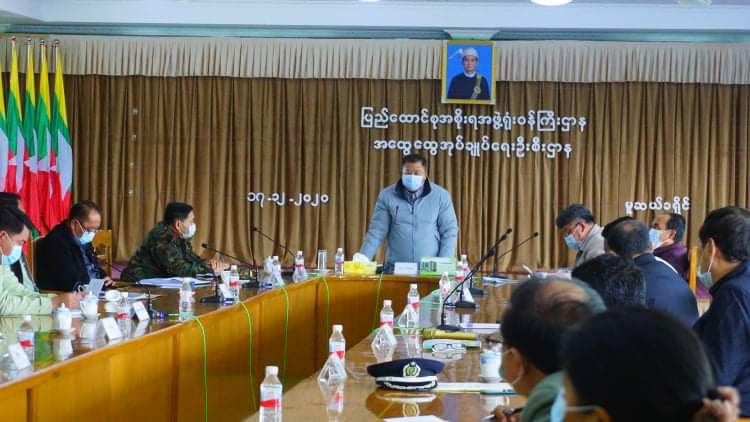 မူဆယ်ခရိုင်၊ ခရိုင်အုပ်ချုပ်ရေးမှူး က လက်ရှိ မူဆယ်ခရိုင်၊ နယ်စပ်ဒေသ၌ စီမံဆောင်ရွက်လျက် ရှိသည့် “မြန်မာ-တရုတ် နှစ်နိုင်ငံနယ်စပ်ဒေသရှိ နယ်စပ်ဂိတ်တစ်ချို့အား အမြန်ဆုံးပြန်လည် ဖွင့်လှစ်နိုင်ရေးအတွက် တရုတ်နိုင်ငံ၊ တာဝန်ရှိသူများနှင့် အလွတ်သဘောတွေ့ဆုံဆွေးနွေးမှု အခြေအနေ၊ ကိုဗစ်-၁၉ ရောဂါ ထိန်းချုပ်ကုသရေးနှင့် ပတ်သက်၍ နှစ်နိုင်ငံ ပူးပေါင်းဆောင်ရွက်မှု အခြေအနေ၊ တရုတ်နိုင်ငံဘက်မှ နယ်နိမိတ်ကာရံထားမှု အခြေအနေ၊ တရုတ်နိုင်ငံဘက်သို့ ဝင်ရောက် နိုင်ရန် အချိန်ကြာမြင့်စွာ စောင့်ဆိုင်းနေကြသည့် ကုန်တင်ယာဉ်များကြောင့် ဒေသအတွင်း ယာဉ်ကြောကြပ်တည်းမှု မရှိစေရေးနှင့် ယာဉ်အန္တရာယ်ကင်းရှင်းစေရေးအတွက် ကော်မတီဖွဲ့စည်းပြီး ဝိုင်းဝန်းပူးပေါင်းဆောင်ရွက်မှု အခြေအနေ၊ ကုန်စည်စီးဆင်းမှု မြန်ဆန်စေရေးအတွက် တရုတ်နိုင်ငံဘက်သို့ ဝင်ရောက်မည့် ကုန်တင်ယာဉ်အမျိုးအစားအလိုက် ကော်မတီ အဖွဲ့မှ စနစ်တစ်ကျစိစစ်ဆောင်ရွက်မှု အခြေအနေနှင့် အခြားနယ်စပ်ဒေသ အကြောင်းအရာများကို” ပရိုဂျက်တာဖြင့် အသေးစိတ်ရှင်းလင်းတင်ပြသည်။