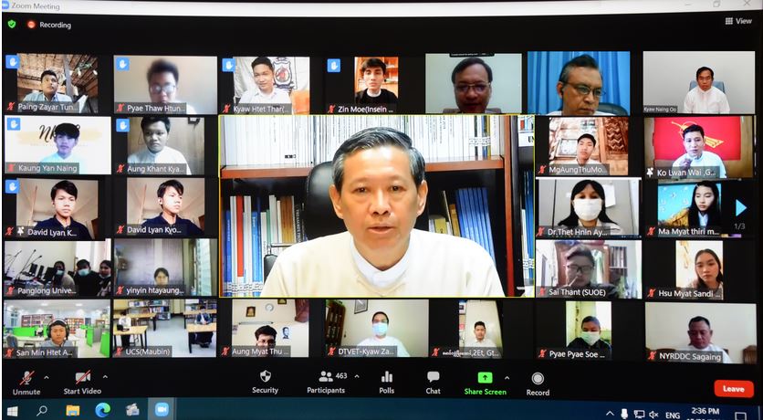 အမျိုးသားပညာရေး မဟာဗျူဟာစီမံကိန်း (၂၀၂၁-၂၀၃၀) ပြုစုရေးအတွက် ကျောင်းသားသမဂ္ဂများ၊ ကျောင်းသားကျောင်းသူများနှင့် ညှိနှိုင်းအစည်းအဝေးကို ယနေ့နံနက် ၉ နာရီတွင် နေပြည်တော်ရှိ ပညာရေးဝန်ကြီးဌာန ရုံးအမှတ် (၁၃) မှ ဗီဒီယိုကွန်ဖရင့်စနစ်ဖြင့် ကျင်းပသည်။
