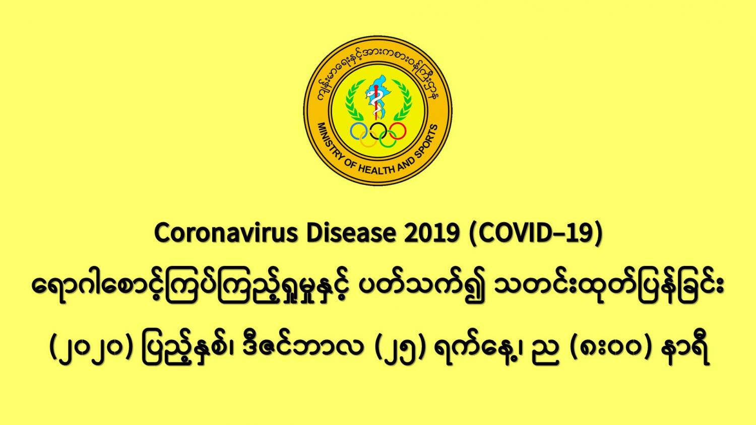 (၂၄-၁၂-၂၀၂၀) ရက်နေ့၊ ည (၈:၀၀) နာရီမှ (၂၅-၁၂-၂၀၂၀) ရက်နေ့၊ ည (၈:၀၀) နာရီ အတွင်း ဓာတ်ခွဲနမူနာ စုစုပေါင်း (၁၉,၅၄၃) ခုအား စစ်ဆေးပြီးစီးခဲ့ရာ COVID-19 ရောဂါ ဓာတ်ခွဲအတည်ပြု လူနာသစ် (၇၅၈) ဦး တွေ့ရှိရပါသည်။
