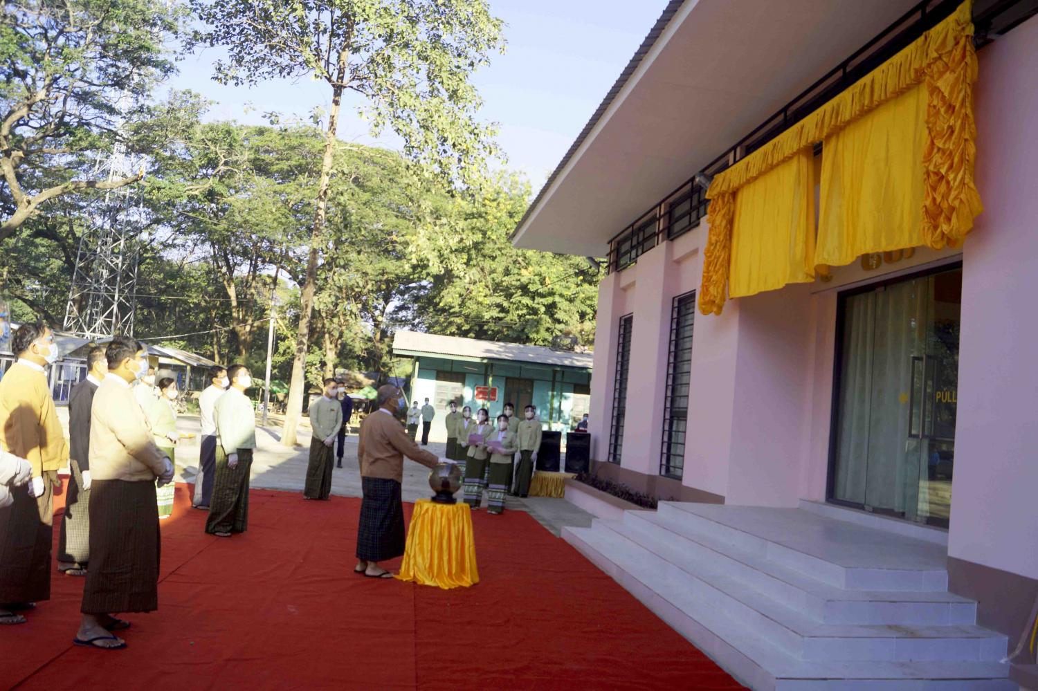 ရှေးဦးစွာ မြို့နယ်အထွေထွေအုပ်ချုပ်ရေးဦးစီးဌာနရုံး ဗိုလ်ဥတ္တမခန်းမဆောင် အဆောက်အအုံသစ်အား မကွေးတိုင်း ဒေသကြီးဥပဒေချုပ် ဦးဆန်းလင်း ၊ ပြည်သူ့လွှတ်တော်ကိုယ်စားလှယ် ဦးထွန်းထွန်း ၊ မြို့နယ်အုပ်ချုပ်ရေးမှူး ဦးထွန်းသိန်းအောင် ၊ မြို့မမြို့ဖ ဦးနိုင်ချိုနှင့် ဦးဝင်းမြင့် တို့က ဖဲကြိုးဖြတ်၍ ဖွင့်လှစ်ပေးခဲ့ကြပြီး မကွေးတိုင်းဒေသကြီး ဝန်ကြီးချုပ် ဒေါက်တာအောင်မိုးညို က ဗိုလ်ဥတ္တမ ခန်းမဆောင်သစ်ဆိုင်းဘုတ်အား စက်ခလုတ်နှိပ်၍ ဖွင့်လှစ်ပေးခဲ့သည်။