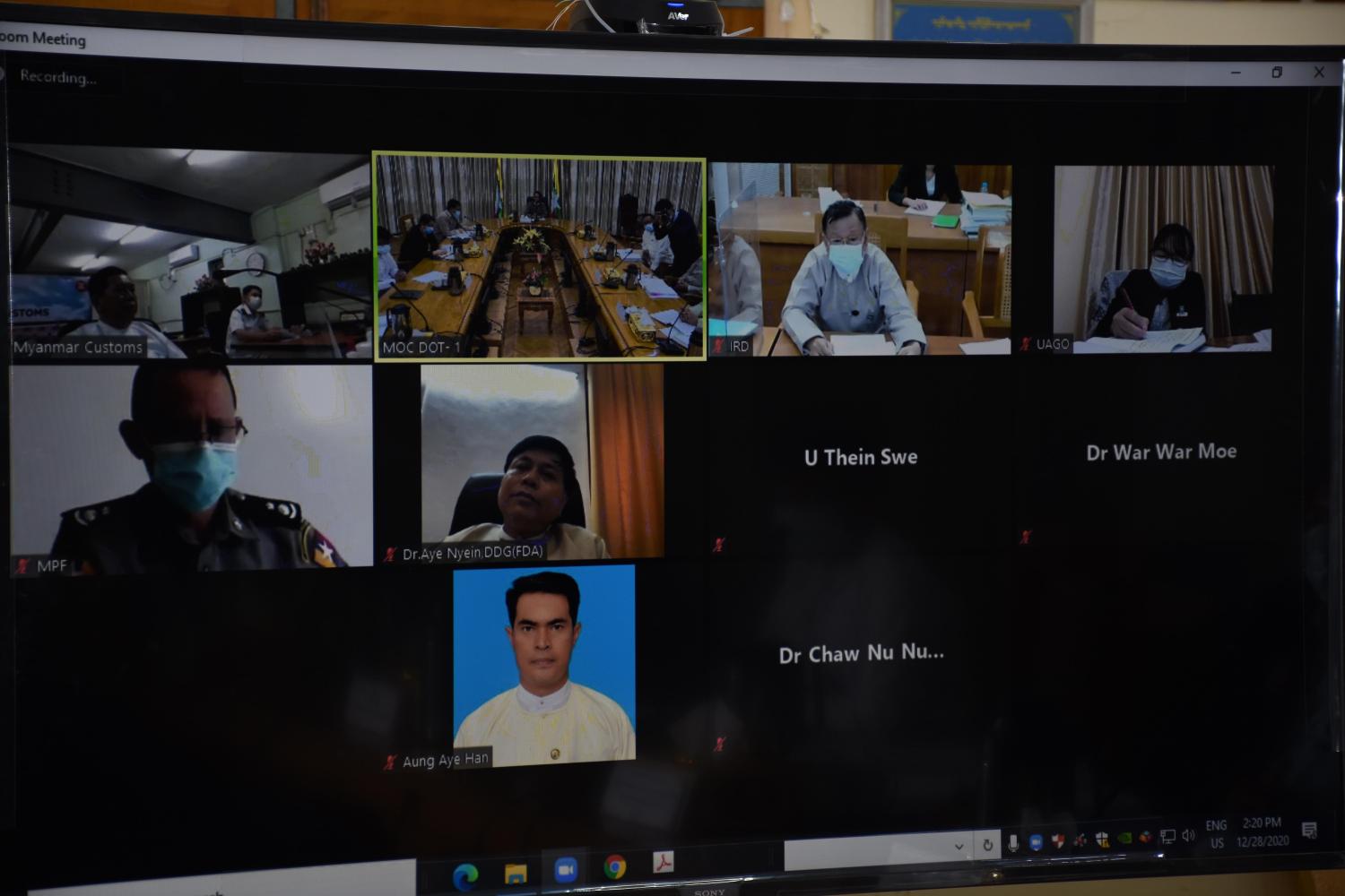 အစည်းအဝေးတွင် ကော်မတီဥက္ကဋ္ဌ၊ စီးပွားရေးနှင့် ကူးသန်းရောင်းဝယ်ရေးဝန်ကြီးဌာန၊ ဒုတိယဝန်ကြီး ဦးအောင်ထူးက အထွေထွေ အုပ်ချုပ်ရေးဦးစီးဌာနက ထုတ်ပြန်သတ်မှတ်ထားသည့် စည်းကမ်းချက်များနှင့်အညီ ယစ်မျိုးလိုင်စင် ရယူဆောင်ရွက်လျက်ရှိသည့် ကိစ္စရပ်များနှင့် ပတ်သက်၍ အငယ်စား၊ အသေးစား၊ အလတ်စား၊ အရက်ချက်စက်ရုံများနှင့် ဆွေးနွေးမှုများနှင့် ကော်မတီအဖွဲ့ဝင်များ၏ အကြံပြုချက်များအပေါ်အခြေခံ၍ အထက်ဌာနများသို့ တင်ပြသွားရန်နှင့် အရက်ချက်စက်ရုံများ၏ ထုတ်လုပ်မှုအလိုက် အငယ်စား၊ အသေးစား၊ အလတ်စားဟူ၍ အတန်းအစားခွဲခြားရေးကိစ္စ၊ တိုင်းဒေသကြီးနှင့်ပြည်နယ်များအလိုက် ယစ်မျိုးလိုင်စင်ကြေး သတ်မှတ်ကောက်ခံမှုများကို ကွာဟချက် ကြီးမားမှုမရှိစေရေး သုံးသပ်တင်ပြရန်ကိစ္စ၊ မြန်မာနိုင်ငံယမကာ ဖြန့်ဖြူးထုတ်လုပ်သူများအသင်းမှ တင်ပြထားသော ဈေးကွက်အတွင်း နိုင်ငံခြားအရက်များ ရောင်းချမှုအခြေအနေနှင့် ပတ်သက်၍ ဆက်လက်ဆောင်ရွက်ရမည့် ကိစ္စရပ်များနှင့် ယမကာများအား အွန်လိုင်းဖြင့်ကြော်ငြာခြင်း၊ ဖြန့်ဖြူးရောင်းချခြင်းများကို တားမြစ်နိုင်ရေး ကိစ္စရပ်များကို ညွှန်ကြားချက်များထုတ်ပြန်နိုင်ရေးနှင့် ယမကာများ နိုင်ငံအတွင်းမှ ဖြတ်သန်းပို့ဆောင်မည့် Transit Trade နှင့်စပ်လျဉ်း၍ ဆက်လက် ဆောင်ရွက်ရန် ကိစ္စရပ်များကို ဆွေးနွေး ပေးကြပါရန် ပြောကြားသည်။