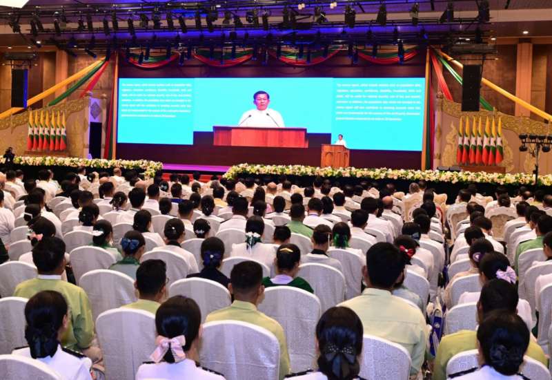 ၂၀၂၄ ခုနှစ် လူဦးရေနှင့်အိမ်အကြောင်းအရာသန်းခေါင်စာရင်း ပြည်ထောင်စုအစီရင်ခံစာ ထုတ်ပြန်ခြင်းအခမ်းအနားကို ယနေ့နံနက်ပိုင်းတွင် နေပြည်တော်ရှိ မြန်မာအပြည်ပြည်ဆိုင်ရာကွန်ဗင်းရှင်းဗဟိုဌာန(၁)(MICC-1)၌ ကျင်းပပြုလုပ်ရာ ပြည်ထောင်စုသမ္မတမြန်မာနိုင်ငံတော် ယာယီသမ္မတ နိုင်ငံတော်လုံခြုံရေးနှင့်အေးချမ်းသာယာရေးကော်မရှင်ဥက္ကဋ္ဌ ဗိုလ်ချုပ်မှူးကြီးမင်းအောင်လှိုင် တက်ရောက်အမှာစကား ပြောကြားသည်။