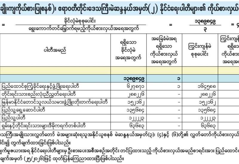 ရန်ကုန်မြို့နှင့် မန္တလေးမြို့အတွက် ရည်ညွှန်းလက်ကားဈေးနှုန်းများနှင့် ပြည်ထောင်စုနယ်မြေ နေပြည်တော်၊ တိုင်းဒေသကြီး/ပြည်နယ် မြို့တော်များအတွက် ရည်ညွှန်းလက်လီဈေးနှုန်းများ