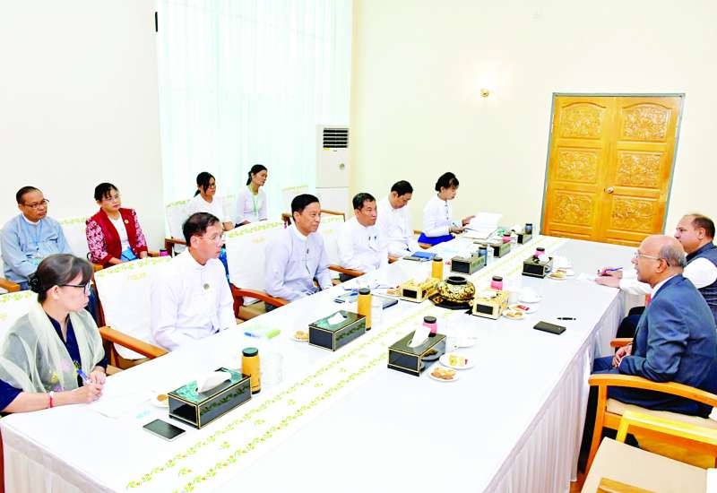 လူမှုဝန်ထမ်း၊ ကယ်ဆယ်ရေးနှင့်ပြန်လည်နေရာချထားရေးဝန်ကြီးဌာန ပြည်ထောင်စုဝန်ကြီး ဒေါက်တာစိုးဝင်းသည် မြန်မာနိုင်ငံဆိုင်ရာ အိန္ဒိယနိုင်ငံသံအမတ်ကြီး H.E. Mr. Vinay Kumar ဦးဆောင်သောအဖွဲ့ကို ယနေ့နံနက်ပိုင်းတွင် အဆိုပါဝန်ကြီးဌာန မေခလာခန်းမ၌ လက်ခံတွေ့ဆုံသည်။