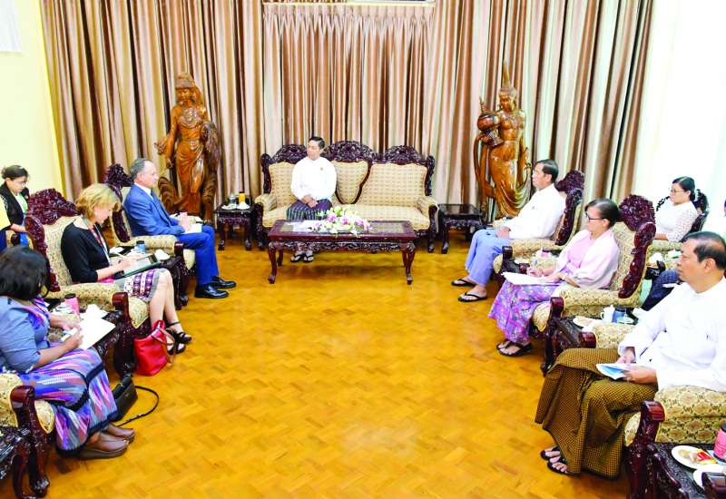 လူမှုဝန်ထမ်း၊ ကယ်ဆယ်ရေးနှင့် ပြန်လည်နေရာချထားရေးဝန်ကြီးဌာန ပြည်ထောင်စုဝန်ကြီး ဒေါက်တာစိုးဝင်းသည် ကုလသမဂ္ဂကလေးများ ရန်ပုံငွေအဖွဲ့(UNICEF)၏ မြန်မာနိုင်ငံဆိုင်ရာ ဌာနေကိုယ်စားလှယ် Mr. Marcoluigi Corsi ဦးဆောင်သောအဖွဲ့ကို ယနေ့နံနက်ပိုင်းတွင် အဆိုပါဝန်ကြီးဌာန အစည်းအဝေးခန်းမ၌ လက်ခံတွေ့ဆုံသည်။