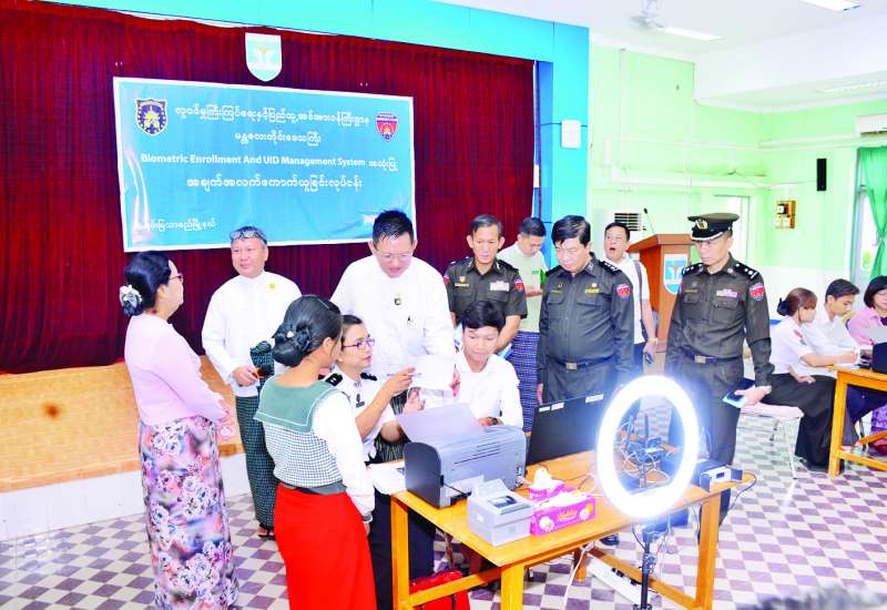 လူဝင်မှုကြီးကြပ်ရေးနှင့် ပြည်သူ့အင်အားဝန်ကြီးဌာန ဒုတိယဝန်ကြီး ဒေါက်တာမျိုးသန့်သည် တာဝန်ရှိသူများနှင့်အတူ ယနေ့နံနက်ပိုင်းတွင် မန္တလေးမြို့ အောင်မြေသာစံမြို့နယ် ဒေါနဘွားရပ်ကွက်ရှိ ပင်မစစ်လက်နက်ပစ္စည်းတပ် အစည်းအဝေးခန်းမ၌ အသက်(၁၀)နှစ်နှင့်အထက် နိုင်ငံသားစိစစ်ရေးကတ် ကိုင်ဆောင်ထားသူများအား Biometric Enrolment Application ရိုက်သွင်းဆောင်ရွက်နေမှု၊ ဓာတ်ပုံ ရိုက်ခြင်း၊ မျက်လုံး Scan ဖတ်ခြင်း၊ လက်ဗွေ Scan ဖတ်ခြင်းများ ဆောင်ရွက်နေမှုတို့ကို ကြည့်ရှုအားပေးသည်။