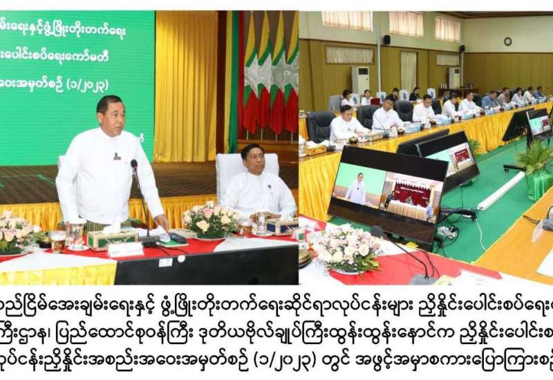 ရခိုင်ပြည်နယ် တည်ငြိမ်အေးချမ်းရေးနှင့် ဖွံ့ဖြိုးတိုးတက်ရေးဆိုင်ရာလုပ်ငန်းများ ညှိနှိုင်းပေါင်းစပ်ရေးကော်မတီ၏ လုပ်ငန်းညှိနှိုင်းအစည်းအဝေး အမှတ်စဉ်(၁/၂၀၂၃)ကို ယနေ့မွန်းလွဲ ၁ နာရီတွင် နယ်စပ်ရေးရာဝန်ကြီးဌာန စုပေါင်းခန်းမ၌ကျင်းပသည်။