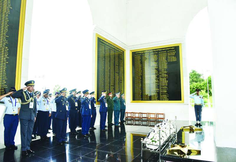 မြန်မာနိုင်ငံက အိမ်ရှင်အဖြစ် လက်ခံကျင်းပသည့် အကြိမ်(၂၀)မြောက် အာဆီယံလေတပ်ဦးစီး ချုပ်များအစည်းအဝေး 20th ASEAN Air Chiefs Conference (20th AACC)ကို တက်ရောက်လာကြသည့် လေတပ်ဦးစီးချုပ်များ ဦးဆောင်သော ကိုယ်စားလှယ်အဖွဲ့ဝင်များသည် ယနေ့နံနက်ပိုင်းတွင် သူရဲကောင်းဗိမာန် (နေပြည်တော်)သို့သွားရောက်၍ သူရဲကောင်းဗိမာန်အတွင်းရှိ အထိမ်းအမှတ်ကျောက်တိုင်ရှေ့၌ ဂုဏ်ပြုပန်းခြင်းများဖြင့် နိုင်ငံတော်နှင့်တပ်မတော်အတွက် အသက်စွန့်လွှတ်ခဲ့ကြသူများအား အလေးပြုကြပြီး ဧည့်သည်တော် မှတ်တမ်းစာအုပ်တွင် မှတ်တမ်းတင်လက်မှတ် ရေးထိုးကြသည်။