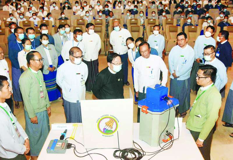 မြန်မာအီလက်ထရောနစ်မဲပေးစက်နှင့်စပ်လျဉ်းပြီး ရှင်းလင်း၍ လက်တွေ့သရုပ်ပြ စမ်းသပ်မဲပေးခြင်းများဆောင်ရွက်