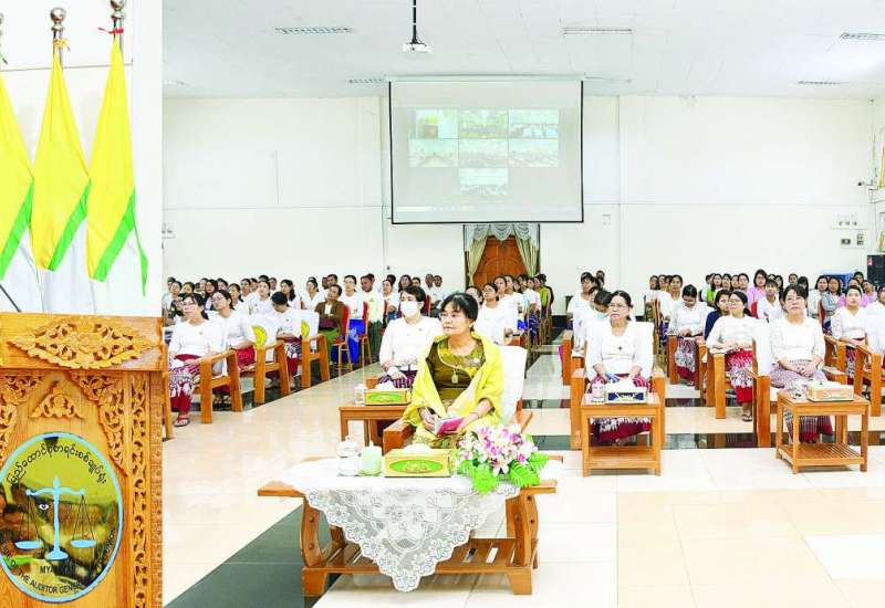 အလယ်အလတ်အဆင့် (Grade-2) နှင့် အဆင့်မြင့် (Grade-3) စာရင်းကိုင်နှင့် ရုံးလုပ်ငန်း ကျွမ်းကျင်မှု သင်တန်းအမှတ် စဉ်-၁၀၁ သင်တန်းဖွင့်ပွဲ အခမ်းအနားကို ယနေ့ နံနက် ၁၀ နာရီတွင် နေပြည်တော်ရှိ ပြည်ထောင်စုစာရင်းစစ်ချုပ်ရုံး နဝရတ် ခန်းမ၌ ကျင်းပသည်။