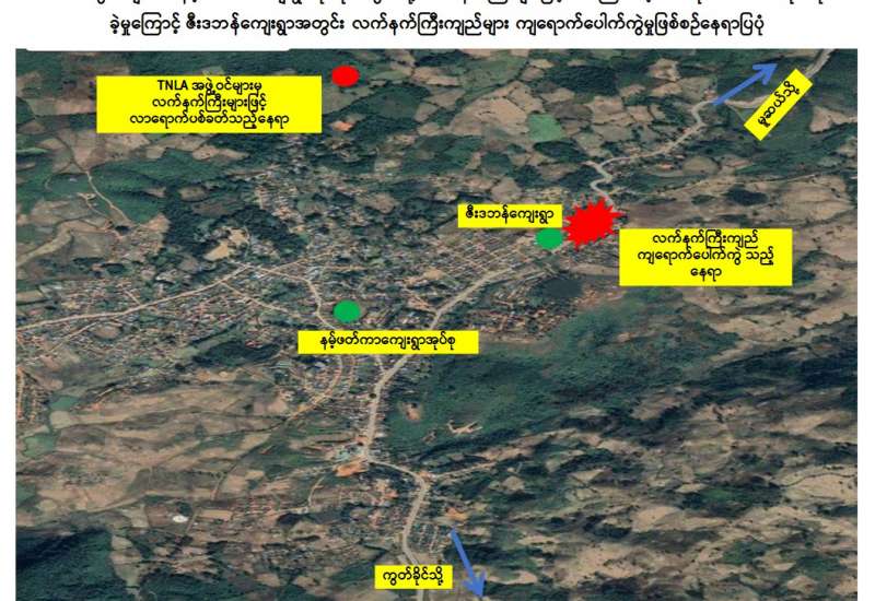 ရှမ်းပြည်နယ်(မြောက်ပိုင်း)၊ ကွတ်ခိုင်မြို့နယ်၊ နမ့်ဖတ်ကာကျေးရွာအုပ်စု၊ ဇီးဒဘန်ကျေးရွာအတွင်းသို့ TNLA အဖွဲ့ဝင်များက လက်နက်ကြီးများဖြင့် အကြောင်းမဲ့ ပစ်ခတ်တိုက်ခိုက်ခဲ့သဖြင့် ကျေးရွာအတွင်းလက်နက်ကြီးကျည်များ ကျရောက်ပေါက်ကွဲခဲ့ပြီး အပြစ်မဲ့ဒေသခံပြည်သူများသေဆုံး၊ ထိခိုက်ဒဏ်ရာများရရှိခဲ့ကြောင်း သိရှိရသည်။