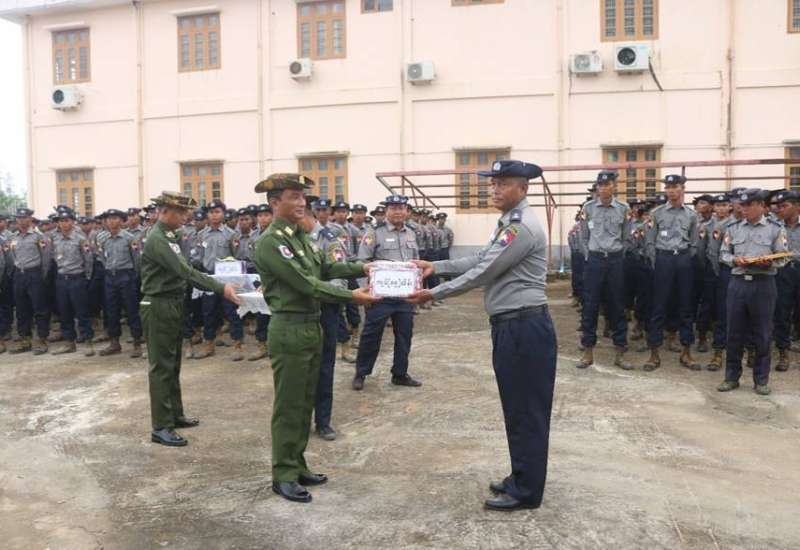 မိုခါမုန်တိုင်းတိုက်ခတ်ခဲ့မှုကြောင့် ရခိုင်ပြည်နယ်အတွင်းရှိ မုန်တိုင်းသင့်မြို့နယ်များမှ ထိခိုက်ပျက်စီးမှုများအား ကူညီကယ်ဆယ်ရေးနှင့် ပြန်လည်တည်ဆောက်ရေးလုပ်ငန်းများတွင် အင်တိုက်အားတိုက်ကြိုးပမ်းဆောင်ရွက်ခဲ့ကြပြီး ၎င်းတို့၏နေရပ်ဒေသများသို့ ပြန်လည်ထွက်ခွာကြမည့် မြန်မာနိုင်ငံရဲတပ်ဖွဲ့ဝင်များအား ယနေ့နံနက်ပိုင်းတွင် အနောက်ပိုင်းတိုင်းစစ်ဌာနချုပ်တိုင်းမှူး ဗိုလ်ချုပ်ထင်လတ်ဦးနှင့် တာဝန်ရှိသူများက စစ်တွေမြို့၊ ပြည်နယ်လွှတ်တော်ရုံးဝန်းအတွင်း၌ သွားရောက်တွေ့ဆုံသည်။