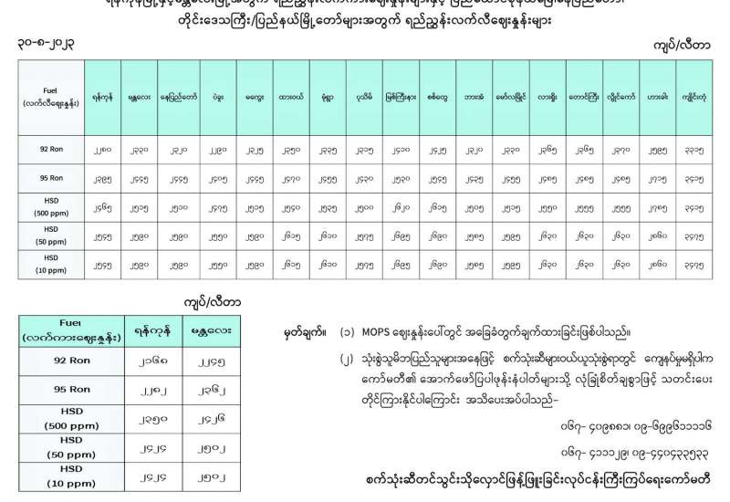 ရန်ကုန်မြို့နှင့် မန္တလေးမြို့အတွက် ရည်ညွှန်းလက်ကားဈေးနှုန်းများနှင့် ပြည်ထောင်စုနယ်မြေ နေပြည်တော်၊ တိုင်းဒေသကြီး/ပြည်နယ် မြို့တော်များအတွက် ရည်ညွှန်းလက်လီဈေးနှုန်းများ
