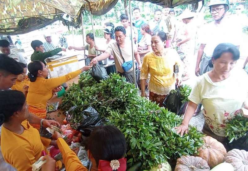 ဆိုင်ကလုန်းမုန်တိုင်း (မိုခါ) တိုက်ခတ်မှုကြောင့် မုန်တိုင်းဒဏ်သင့်ဒေသခံပြည်သူများနှင့် ဌာနဆိုင်ရာဝန်ထမ်းများ၏ စားသောက်ရေးအဆင်ပြေစေရန်နှင့် မိမိတို့အလိုရှိရာ စားသောက်ကုန်ပစ္စည်းများကို ဈေးနှုန်းသက်သာစွာဖြင့် ဝယ်ယူစားသောက်နိုင်ရေးအတွက် အနောက်ပိုင်းတိုင်းစစ်ဌာနချုပ်၊ နယ်မြေခံတပ်မတော်သားများနှင့် တာဝန်ရှိသူများက နေ့စဉ်ရောင်းချပေးလျက်ရှိသည်။