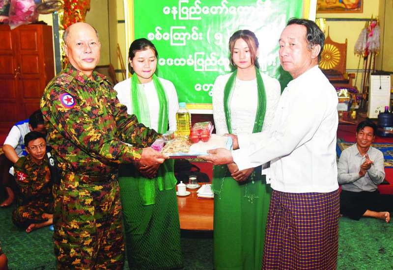 နယ်မြေတည်ငြိမ်အေးချမ်းရေး၊ လုံခြုံရေး၊ တရားဥပဒေစိုးမိုးရေး၊ ပညာရေး၊ ကျန်းမာရေးနှင့် ဒေသဖွံ့ဖြိုးရေးလုပ်ငန်းများကို ကွင်းဆင်းဆောင်ရွက်ရန် ဂမုန်းတောင်ကျေးရွာ၌ရောက်ရှိနေသည့် နေပြည်တော်ကောင်စီဝင် ဗိုလ်မှူးကြီးမင်းနောင် ဦးစီးပြီးဌာနဆိုင်ရာများပါဝင်သော ပူးပေါင်းအဖွဲ့က မဲပေါက်ကျေးရွာအုပ်စုအတွင်းရှိ ဘုန်းတော်ကြီးကျောင်းများမှ ဆရာတော်သံဃာတော်များအား ဝါဆိုသင်္ကန်းနှင့် လှူဖွယ်ပစ္စည်းများ ဆက်ကပ်လှူဒါန်းပွဲ အခမ်းအနားကို ယနေ့နံနက်ပိုင်းက နေပြည်တော် ပျဉ်းမနားမြို့နယ် မဲပေါက်ကျေးရွာအုပ်စု ဂမုန်းတောင်ကျေးရွာရှိ ဂမုန်းတောင်ရွာဦးကျောင်း၌ ကျင်းပသည်။