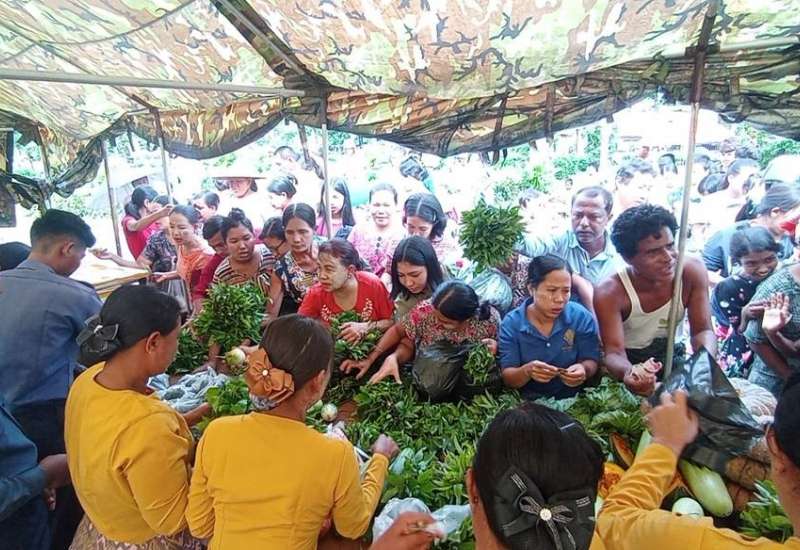 ဆိုင်ကလုန်းမုန်တိုင်း(မိုခါ)တိုက်ခတ်မှုကြောင့် မုန်တိုင်းဒဏ်သင့် ဒေသခံပြည်သူများနှင့် ဌာနဆိုင်ရာဝန်ထမ်းများ၏ စားသောက်ရေးအဆင်ပြေစေရန်နှင့် မိမိတို့အလိုရှိရာ စားသောက်ကုန်ပစ္စည်းများကို ဈေးနှုန်းသက်သာစွာဖြင့် ဝယ်ယူစားသောက်နိုင်ရေးအတွက် အနောက်ပိုင်းတိုင်းစစ်ဌာနချုပ်၊ နယ်မြေခံတပ်မတော်သားများနှင့် တာဝန်ရှိသူများက နေ့စဉ်ရောင်းချပေးလျက်ရှိသည်။