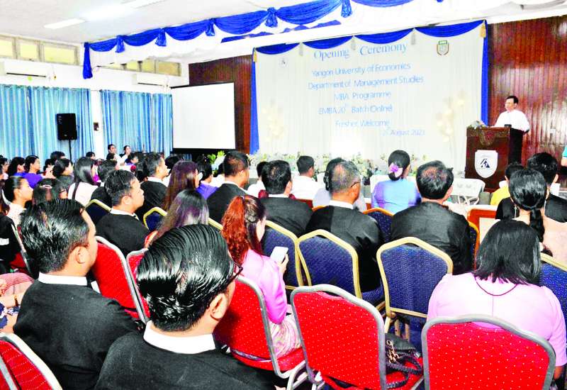 ပညာရေးဝန်ကြီးဌာန ဒုတိယဝန်ကြီး ဒေါက်တာဇော်မြင့်သည် ယနေ့နံနက် ၁၀နာရီတွင် ရန်ကုန်စီးပွားရေးတက္ကသိုလ် (လှိုင်နယ်မြေ) ပတ္တမြားဆောင်ရှိ စီးပွားရေးစီမံခန့်ခွဲမှုပညာဌာန၌ ကျင်းပသော အကြိမ် (၂၀)မြောက် အမှုဆောင်အရာရှိများအဆင့် စီးပွားရေးစီမံခန့်ခွဲမှုပညာ မဟာဘွဲ့ (EMBA 20th Batch) အွန်လိုင်းသင်တန်း၏ မောင်မယ်သစ်လွင်ကြိုဆိုပွဲ အခမ်းအနားကို တက်ရောက်သည်။