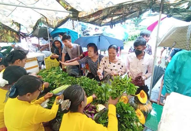 ဆိုင်ကလုန်းမုန်တိုင်း (မိုခါ) တိုက်ခတ်မှုကြောင့် မုန်တိုင်းဒဏ်သင့်ဒေသခံပြည်သူများနှင့် ဌာနဆိုင်ရာဝန်ထမ်းများ၏ စားသောက်ရေးအဆင်ပြေစေရန်နှင့် မိမိတို့အလိုရှိရာ စားသောက်ကုန်ပစ္စည်းများကို ဈေးနှုန်းသက်သာစွာဖြင့် ဝယ်ယူစားသောက်နိုင်ရေးအတွက် အနောက်ပိုင်းတိုင်းစစ်ဌာနချုပ်၊ နယ်မြေခံတပ်မတော်သားများနှင့် တာဝန်ရှိသူများက နေ့စဉ်ရောင်းချပေးလျက်ရှိသည်။