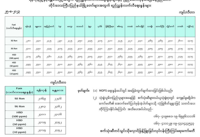 ရန်ကုန်မြို့နှင့် မန္တလေးမြို့အတွက် ရည်ညွှန်းလက်ကားဈေးနှုန်းများနှင့် ပြည်ထောင်စုနယ်မြေ နေပြည်တော်၊ တိုင်းဒေသကြီး/ ပြည်နယ်မြို့တော်များအတွက် ရည်ညွှန်းလက်လီဈေးနှုန်းများ