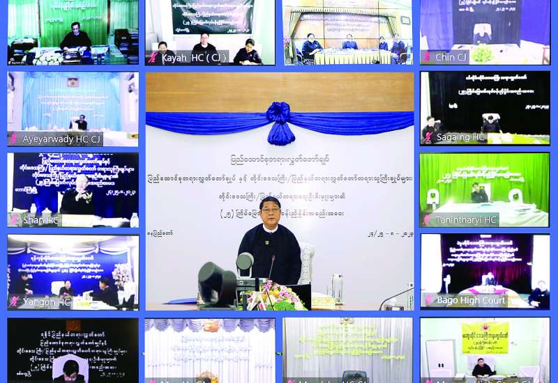 ပြည်ထောင်စုတရားလွှတ်တော်ချုပ်နှင့် တိုင်းဒေသကြီး/ပြည်နယ် တရားလွှတ်တော်များ၏ (၂၅)ကြိမ်မြောက် ညှိနှိုင်းအစည်းအဝေးကို ယနေ့နံနက် ၉ နာရီက နေပြည်တော်ရှိ ပြည်ထောင်စုတရားလွှတ်တော်ချုပ်၌ ဗီဒီယိုကွန်ဖရင့်စနစ်ဖြင့် ကျင်းပသည်။