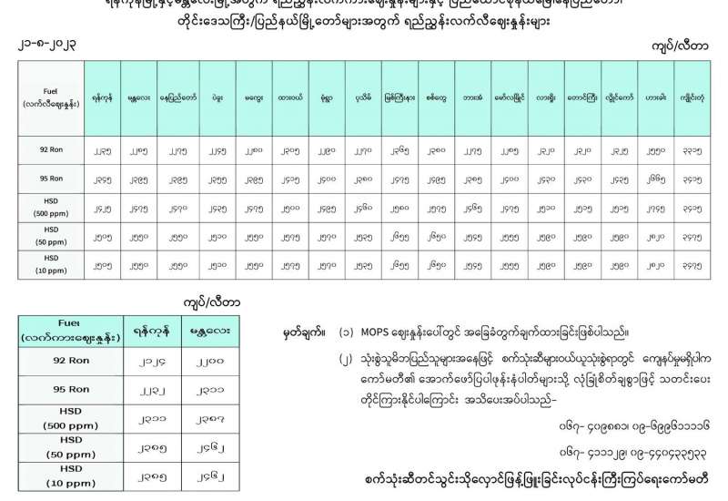 ရန်ကုန်မြို့နှင့် မန္တလေးမြို့အတွက် ရည်ညွှန်းလက်ကားဈေးနှုန်းများနှင့် ပြည်ထောင်စုနယ်မြေ နေပြည်တော်၊ တိုင်းဒေသကြီး/ပြည်နယ် မြို့တော်များအတွက် ရည်ညွှန်းလက်လီဈေးနှုန်းများ