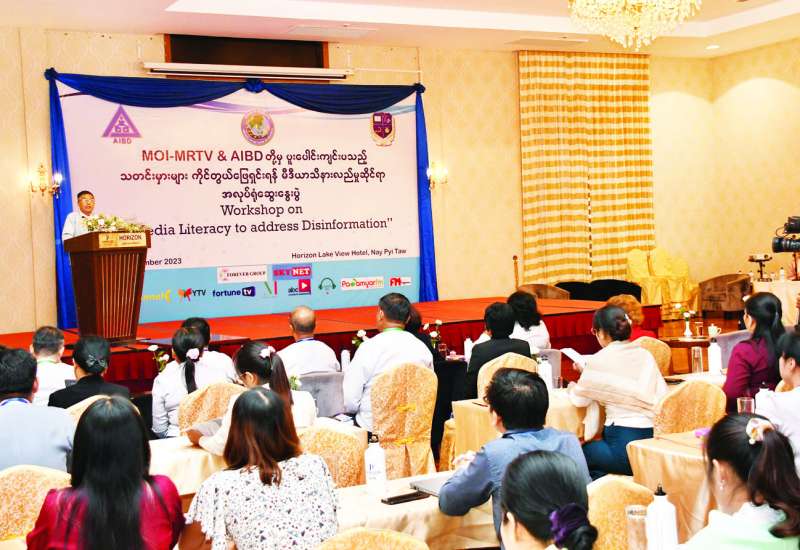 ပြန်ကြားရေးဝန်ကြီးဌာန မြန်မာ့အသံနှင့်ရုပ်မြင်သံကြားနှင့် အာရှ-ပစိဖိတ်ဒေသတွင်း ရုပ်/သံလွှင့်အဖွဲ့အစည်း (Asia-Pacific Institute for Broadcasting Development- AIBD) တို့ပူးပေါင်းပြီး သတင်းမှားများ ကိုင်တွယ်ဖြေရှင်းရန် သတင်းအချက်အလက် သိနားလည်မှုဆိုင်ရာ အလုပ်ရုံဆွေးနွေးပွဲ “Workshop on Media Literacy to address disinformation” ပိတ်ပွဲအခမ်းအနားကို ယနေ့ ညနေ ၄ နာရီခွဲတွင် နေပြည်တော် Horizon Lake View Hotel, State Meeting Room 2 ခန်းမတွင် ကျင်းပသည်။