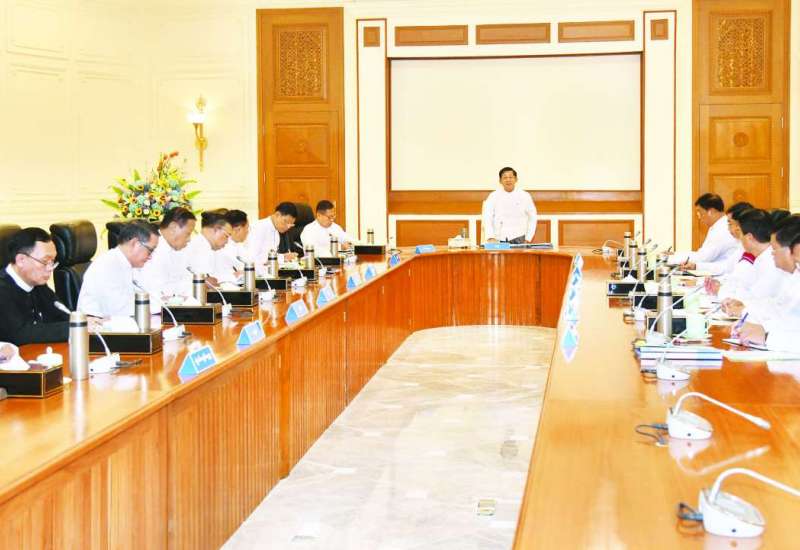 နိုင်ငံတော်စီမံအုပ်ချုပ်ရေးကောင်စီအစည်းအဝေး (၄/၂၀၂၃)ကို ယနေ့နံနက်ပိုင်းတွင် နေပြည်တော်ရှိ နိုင်ငံတော်စီမံအုပ်ချုပ်ရေးကောင်စီဥက္ကဋ္ဌရုံး အစည်းအဝေးခန်းမ၌ ကျင်းပပြုလုပ်ရာ နိုင်ငံတော်စီမံအုပ်ချုပ်ရေးကောင်စီဥက္ကဋ္ဌ နိုင်ငံတော်ဝန်ကြီးချုပ် ဗိုလ်ချုပ်မှူးကြီးမင်းအောင်လှိုင် တက်ရောက်အမှာစကား ပြောကြားသည်။