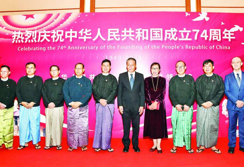 မန္တလေးမြို့ရုံးစိုက် တရုတ်ပြည်သူ့သမ္မတနိုင်ငံ ကောင်စစ်ဝန်ချုပ်ရုံးကကြီးမှူး၍ တရုတ်ပြည်သူ့သမ္မတနိုင်ငံထူထောင်ခြင်း (၇၄)နှစ်မြောက် အမျိုးသားနေ့ အထိမ်းအမှတ် ဂုဏ်ပြုဧည့်ခံပွဲအခမ်းအနားကို ယနေ့ညနေပိုင်းက ချမ်းမြသာစည်မြို့နယ်ရှိ မင်္ဂလာမန္တလေးဟိုတယ်၌ကျင်းပရာ မန္တလေးတိုင်းဒေသကြီးဝန်ကြီးချုပ် ဦးမျိုးအောင်၊ မန္တလေးမြို့ရုံးစိုက် တရုတ်ပြည်သူ့သမ္မတနိုင်ငံ ကောင်စစ်ဝန်ချုပ်ရုံးမှ ကောင်စစ်ဝန်ချုပ် Mr. Chen Chen၊ တိုင်းဒေသကြီးဝန်ကြီးများ၊ တရုတ်ကောင်စစ်ဝန်ချုပ်ရုံးမှ တာဝန်ရှိသူများနှင့် ဖိတ်ကြားထားသူများ တက်ရောက်ကြသည်။