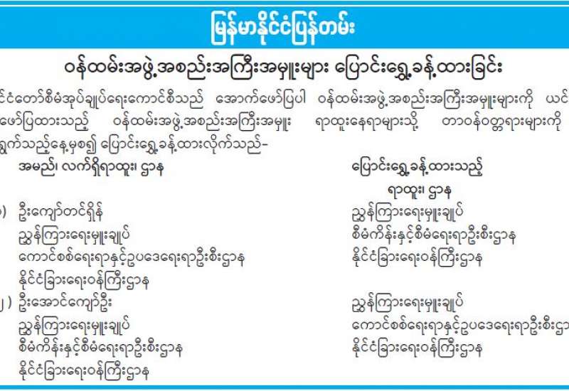 ဝန်ထမ်းအဖွဲ့အစည်းအကြီးအမှူးများ ပြောင်းရွှေ့ခန့်ထားခြင်း