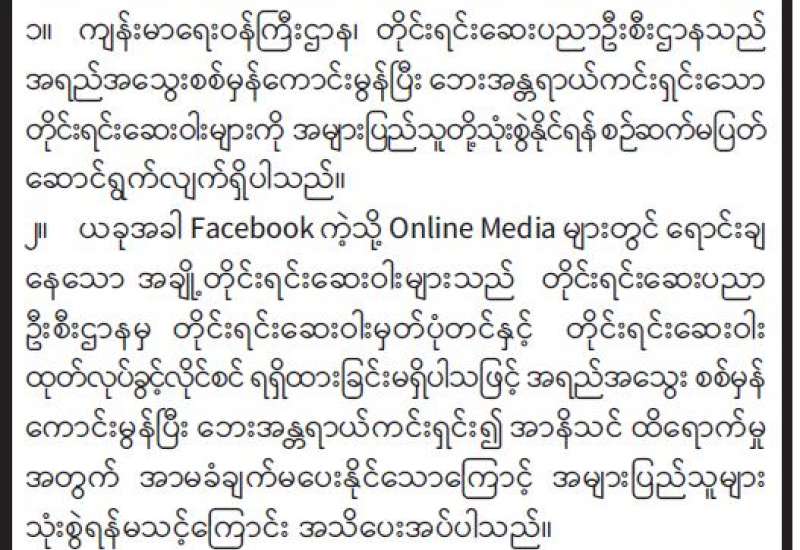ပြန်ကြားရေးဝန်ကြီးဌာနသည် ပြည်ထောင်စုအစိုးရ၏ သဘောတူညီချက်ဖြင့် ပုံနှိပ်ခြင်းနှင့် ထုတ်ဝေခြင်းလုပ်ငန်း နည်းဥပဒေများကို အမိန့်ကြော်ငြာစာအမှတ် (၄၈/၂၀၁၄) ဖြင့် ၂၀၁၄ ခုနှစ်၊ အောက်တိုဘာလ (၁၀) ရက်နေ့တွင် ထုတ်ပြန်ခဲ့ပြီးနောက် လုပ်ငန်းအသိအမှတ်ပြု လက်မှတ်လျှောက်ထားလာပါက ပုံနှိပ်ခြင်းနှင့်ထုတ်ဝေခြင်းလုပ်ငန်း နည်းဥပဒေများနှင့်အညီစိစစ်၍ လုပ်ငန်းအသိအမှတ်ပြု လက်မှတ်များကို ခွင့်ပြုပေးလျက်ရှိပါသည်။