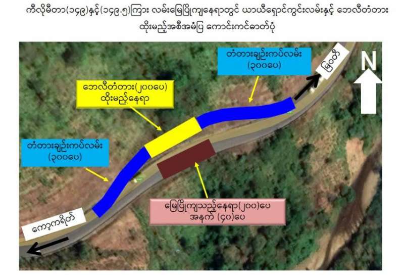 ကရင်ပြည်နယ်အတွင်း မိုးအဆက်မပြတ်ရွာသွန်းမှုကြောင့် မြစ်ရေ၊ ချောင်းရေလျှံခြင်း၊ မြေပြိုကျခြင်းများ ဖြစ်ပေါ်လျက်ရှိခြင်းကြောင့် သြဂုတ်လ ၇ ရက်နေ့က မြဝတီ – ကော့ကရိတ် အာရှကားလမ်းမကြီး၊ တောနော်ရေတံခွန်အနီး မိုင်တိုင်အမှတ်(၁၄၉)နှင့် (၁၅၀) အကြားနေရာတွင် ကားလမ်းအောက်ခံ မြေသားအကျယ် ၃၃ ပေရှိ ကတ္တရာခင်း ကားလမ်း အရှည် ၁၅၀ ပေခန့်သည် ပဲ့ကျပျက်စီးခဲ့ရာ ယာဥ်သွားလာမှုယာယီရပ်ဆိုင်းထားရပြီး အဆိုပါလမ်းပိုင်းအမြန်ဆုံးပြန်လည်ပြုပြင်နိုင်ရေးနှင့်ပတ်သက်ပြီး ဆောင်ရွက်သွားမည့်အခြေအနေများကို ကရင်ပြည်နယ် လမ်းဦးစီးဌာနမှ ညွန်ကြားရေးမှူး ဦးအောင်ညိုအား တွေ့ဆုံမေးမြန်းခဲ့ပါသည်။