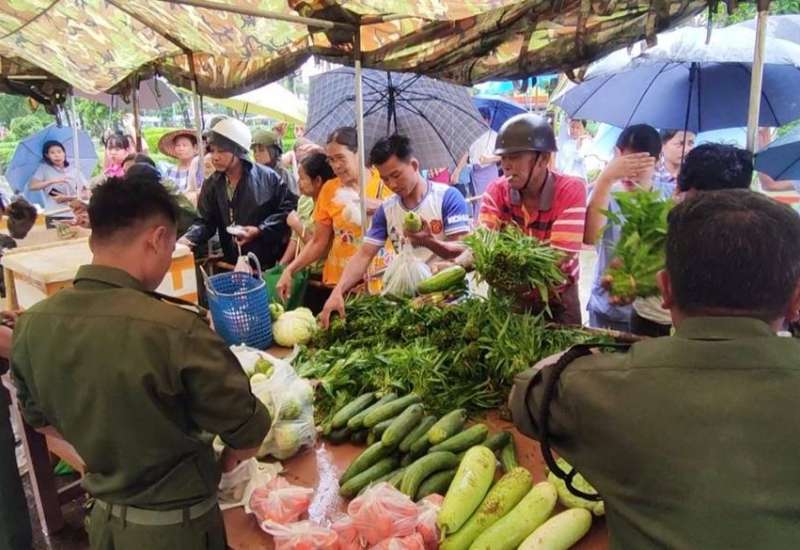 ဆိုင်ကလုန်းမုန်တိုင်း(မိုခါ)တိုက်ခတ်မှုကြောင့် မုန်တိုင်းဒဏ်သင့်ဒေသခံပြည်သူများနှင့် ဌာနဆိုင်ရာဝန်ထမ်းများ၏ စားသောက်ရေးအဆင်ပြေစေရန်နှင့် မိမိတို့အလိုရှိရာ စားသောက်ကုန်ပစ္စည်းများကို ဈေးနှုန်းသက်သာစွာဖြင့် ဝယ်ယူစားသောက်နိုင်ရေးအတွက် အနောက်ပိုင်းတိုင်းစစ်ဌာနချုပ်၊ နယ်မြေခံတပ်မတော်သားများနှင့် တာဝန်ရှိသူများက နေ့စဉ်ရောင်းချပေးလျက်ရှိသည်။