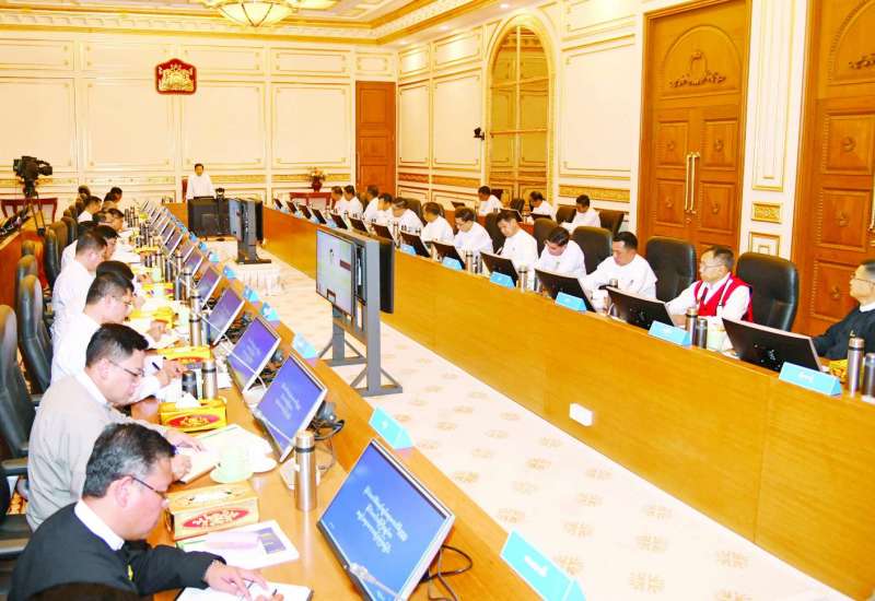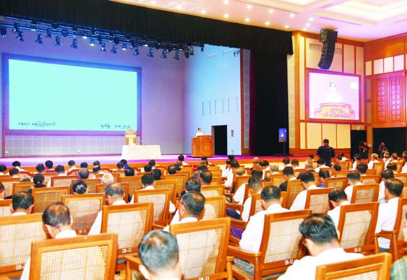 နိုင်ငံတော်စီမံအုပ်ချုပ်ရေးကောင်စီဥက္ကဋ္ဌ နိုင်ငံတော်ဝန်ကြီးချုပ် ဗိုလ်ချုပ်မှူးကြီး မင်းအောင်လှိုင်သည် ပြည်ထောင်စုအဆင့်ပုဂ္ဂိုလ်များနှင့် ပြည်ထောင်စုဝန်ကြီးဌာနများမှ တာဝန်ရှိသူများအား ယနေ့နံနက်ပိုင်းတွင် နေပြည်တော်ရှိ နိုင်ငံတော်စီမံအုပ်ချုပ်ရေးကောင်စီဥက္ကဋ္ဌရုံး ငုရွှေဝါခန်းမ၌တွေ့ဆုံ အမှာစကားပြောကြားသည်။