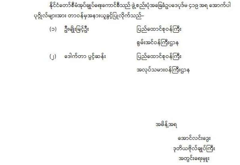 နိုင်ငံတော်စီမံအုပ်ချုပ်ရေးကောင်စီသည် PDF အပါအဝင် အဖွဲ့အစည်း အမျိုးမျိုးအမည်ခံ၍ လက်နက်ကိုင်ဆန့်ကျင်လျက်ရှိသည့် အဖွဲ့အစည်းများအတွင်း ရောက်ရှိနေသူများအား ဥပဒေဘောင်အတွင်းသို့ ပြန်လည်ဝင်ရောက်ရန် ဖိတ်ခေါ်လျက်ရှိပြီး ဥပဒေဘောင်အတွင်းသို့ ဝင်ရောက်လာသူများကိုလည်း လိုအပ်သည့် ကူညီပံ့ပိုးမှုများဆောင်ရွက်ပေးသွားမည်ဖြစ်ကြောင်းနှင့် လက်နက်/ ခဲယမ်းများဖြင့် ဥပဒေဘောင်အတွင်း ဝင်ရောက်လာသူများကို ဆုကြေးငွေများ သီးသန့်ထောက်ပံ့ ပေးသွားမည်ဖြစ်ကြောင်း သတင်းထုတ်ပြန်ခဲ့ပြီး ဖြစ်သည်။