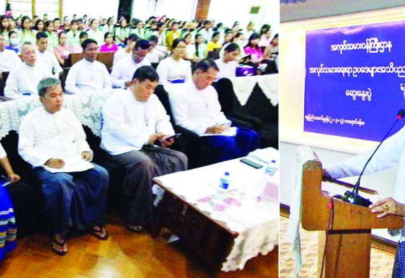 လုပ်ငန်းခွင် ဘေးအန္တရာယ်ကင်းရှင်းရေးနှင့် ကျန်းမာရေးဆိုင်ရာ အသိပညာပေးဆွေးနွေးပွဲကို ယနေ့နံနက်ပိုင်းတွင် ရန်ကုန်တိုင်းဒေသကြီး ရွှေပြည်သာစက်မှု ဇုန်(၁) ခန်းမ၌ ကျင်းပသည်။