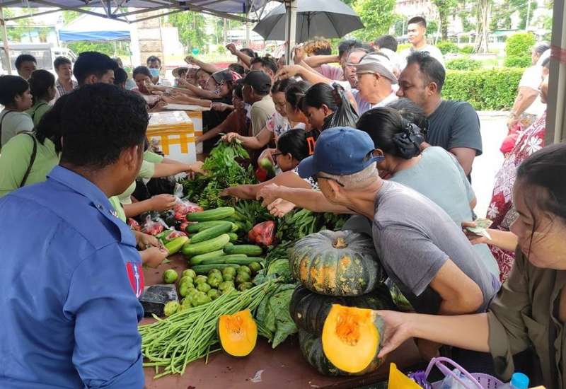 ဆိုင်ကလုန်းမုန်တိုင်း(မိုခါ)တိုက်ခတ်မှုကြောင့် မုန်တိုင်းဒဏ်သင့် ဒေသခံပြည်သူများနှင့် ဌာနဆိုင်ရာဝန်ထမ်းများ၏ စားသောက်ရေးအဆင်ပြေစေရန်နှင့် မိမိတို့အလိုရှိရာ စားသောက်ကုန်ပစ္စည်းများကို ဈေးနှုန်းသက်သာစွာဖြင့် ဝယ်ယူစားသောက်နိုင်ရေးအတွက် အနောက်ပိုင်းတိုင်းစစ်ဌာနချုပ်၊ နယ်မြေခံတပ်မတော်သားများနှင့် တာဝန်ရှိသူများက နေ့စဉ်ရောင်းချပေးလျက်ရှိသည်။