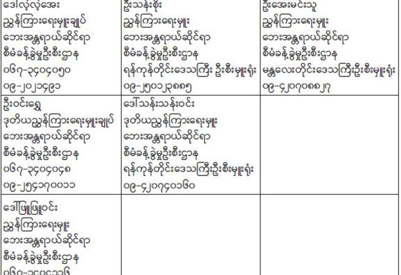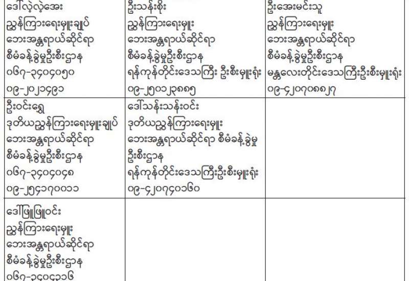 ပြည်ထောင်စုရွေးကောက်ပွဲကော်မရှင်သည် မှတ်ပုံတင်ခွင့်ပြုခဲ့ပြီးဖြစ်သော နိုင်ငံရေးပါတီများ၏ ပါတီလုပ်ငန်းများကို ဥပဒေ၊ နည်းဥပဒေများနှင့်အညီ လိုက်နာ ဆောင်ရွက်ခြင်းရှိ၊ မရှိ ကြီးကြပ်စစ်ဆေးမှုများ ဆောင်ရွက်လျက်ရှိရာ ပြည်ထောင်စုရွေးကောက်ပွဲကော်မရှင်အဖွဲ့ဝင် ဦးအောင်စောဝင်း၊ ဦးအောင်မိုးမြင့်၊ ဦးကိုကိုလွင်နှင့် ဦးသန်းအောင်ကျော်တို့သည် ယနေ့နံနက်ပိုင်းတွင် ရန်ကုန်မြို့ လွှတ်တော်အဆောက်အအုံရှိ ပယင်းခန်းမ၌ မြန်မာပြည်သူ့ ဒီမိုကရက်တစ်ပါတီ (MPD) ၊ ပြည်သူ့ရှေ့ဆောင်ပါတီ (People’s Pioneer Party)နှင့် အမျိုးသားနိုင်ငံရေးမဟာမိတ်များအဖွဲ့ချုပ်ပါတီတို့မှ ဥက္ကဋ္ဌ၊ အမှုဆောင်အဖွဲ့ဝင်များနှင့် တွေ့ဆုံသည်။