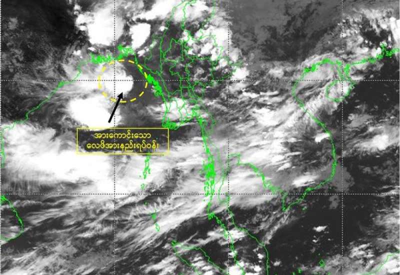 ဘင်္ဂလားပင်လယ်အော်အခြေအနေ။ယနေ့မြန်မာစံတော်ချိန်(၀၆:၃၀)နာရီအချိန် တိုင်းထွာချက်များ အရ ဘင်္ဂလားပင်လယ်အော်အရှေ့မြောက်ပိုင်းတွင် ဖြစ်ပေါ်နေသော အားကောင်းသော လေဖိအားနည်းရပ်ဝန်း (Well Marked Low Pressure Area)သည် ဆက်လက်တည်ရှိနေပါသည်။ ကပ္ပလီပင်လယ်ပြင်၊ ဘင်္ဂလားပင်လယ်အော်တောင်ပိုင်း၊ အရှေ့အလယ်ပိုင်းနှင့် အရှေ့မြောက်ပိုင်း တို့တွင် မုတ်သုံလေအား အလွန်ကောင်းနေပြီး၊ ကျန်ဘင်္ဂလား ပင်လယ်အော်တွင် တိမ်အသင့်အတင့်မှ တိမ်ထူထပ်နေပါသည်။