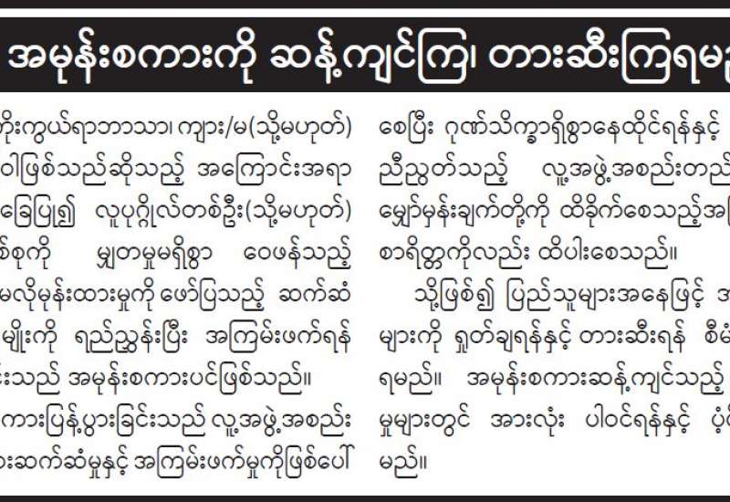 ပြည်သူများသည် သိလိုသောဆန္ဒပြင်းပြကြသည်။ သတင်းဆိုသည်မှာ ပြည်သူများသိလိုသော အရေးအရာကိစ္စများဖြစ်သည်။ မီဒီယာဆိုသည်မှာ ပြည်သူများ သိလိုသောအကြောင်းအရာများကို အသိပေးထုတ်ပြန်ရသည်။ စာနယ်ဇင်းကျင့်ဝတ်တွင် အများပြည်သူသိရှိရန်အလို့ငှာ ထုတ်ပြန်သောသတင်းတိုင်း၌ အချက်အလက်တိကျမှန်ကန်စေရန် အစွမ်းကုန်စိစစ်ရမည်။ ဖော်ပြခြင်းမပြုမီ သတင်းအားလုံးကို တတ်စွမ်းသမျှစိစစ်ရမည်။ မည်သည့် သတင်းအချက်အလက်ကိုမျှ မိမိတို့လိုရာသို့ ဆွဲမရေးရ၊ သို့တည်းမဟုတ် လိုရင်းအချက်အလက်များကို တမင်သက်သက်ထိန်ချန်ခြင်းမပြုရဟု ဆိုထားသည်။