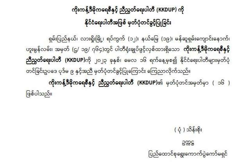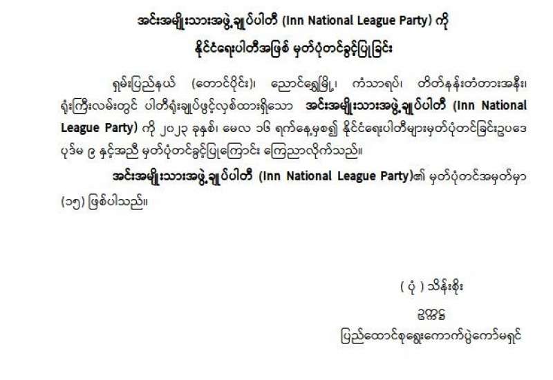 ပြည်ထောင်စုသမ္မတမြန်မာနိုင်ငံတော်၊ ပြည်ထောင်စုရွေးကောက်ပွဲကော်မရှင် ကြေညာချက်အမှတ် (၂၁ / ၂၀၂၃)