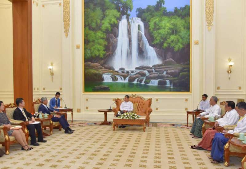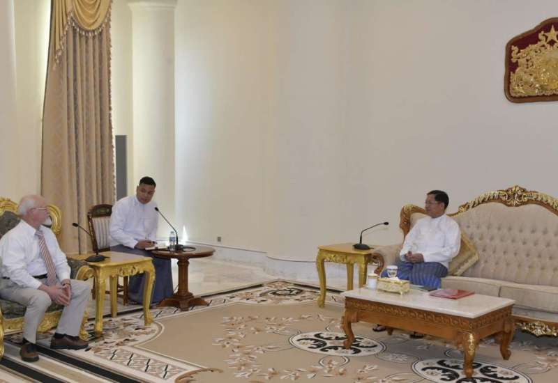 နိုင်ငံတော်စီမံအုပ်ချုပ်ရေးကောင်စီဒုတိယဥက္ကဋ္ဌ ဒုတိယဝန်ကြီးချုပ် ဒုတိယဗိုလ်ချုပ်မှူးကြီးစိုးဝင်းသည် ပြည်ထောင်စုသမ္မတမြန်မာနိုင်ငံဆိုင်ရာ တရုတ်ပြည်သူ့သမ္မတနိုင်ငံ သံအမတ်ကြီး H.E.Mr. Chen Hai အား ယနေ့မွန်းလွဲပိုင်းတွင် နိုင်ငံတော်စီမံအုပ်ချုပ်ရေးကောင်စီဥက္ကဋ္ဌရုံး သံတမန်ဆောင်ဧည့်ခန်းမ၌ လက်ခံတွေ့ဆုံသည်။