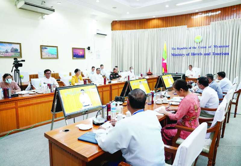 နယ်စပ်ဂိတ်များမှတစ်ဆင့် ခရီးသွားဧည့်သည်များ ဝင်ရောက်၊ ထွက်ခွာလည်ပတ်နိုင်ရေး ညှိနှိုင်းအစည်းအဝေးကို ယနေ့နံနက်ပိုင်းက ဟိုတယ်နှင့်ခရီးသွားလာရေးဝန်ကြီးဌာန နီလာခန်းမ၌ ကျင်းပသည်။