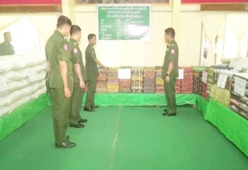 ဆိုင်ကလုန်းမုန်တိုင်း (မိုခါ) တိုက်ခတ်မှုကြောင့် ထိခိုက်ပျက်စီးဆုံးရှုံးမှုများ ဖြစ်ပေါ်ခဲ့သည့် ရခိုင်ပြည်နယ်အတွင်းရှိ မုန်တိုင်းဒဏ်သင့်ပြည်သူများအား အနောက်တောင်တိုင်းစစ်ဌာနချုပ်နှင့် ကွပ်ကဲမှုအောက် တပ်ရင်း/တပ်ဖွဲ့များမှ ဆန်၊ ဆီနှင့် စားသောက်ကုန်ပစ္စည်းများ လှူဒါန်းရန်အတွက် တိုင်းစစ်ဌာနချုပ်၊ ဧရာဝတီခန်းမ၌ စုဖွဲ့ပြင်ဆင်ထားရှိမှုအခြေအနေများကို ယနေ့နံနက်ပိုင်းတွင် တိုင်းမှူး ဗိုလ်မှူးချုပ် ကြည်ခိုင်နှင့် တာဝန်ရှိသူများက သွားရောက်ကြည့်ရှုသည်။