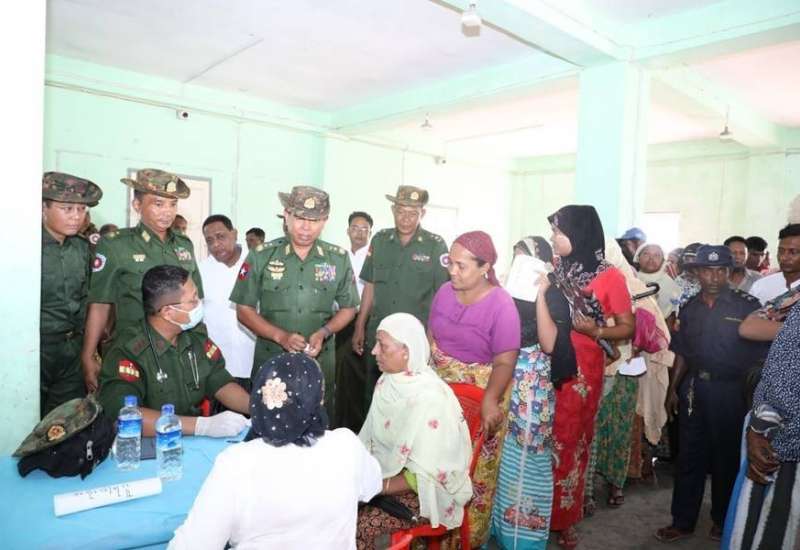 ကာကွယ်ရေးဦးစီးချုပ်ရုံး(ကြည်း)မှ ဒုတိယဗိုလ်ချုပ်ကြီး ဖုန်းမြတ်၊ အနောက်ပိုင်းတိုင်းစစ်ဌာနချုပ် တိုင်းမှူး ဗိုလ်ချုပ် ထင်လတ်ဦးနှင့် အဖွဲ့ဝင်များသည် ယနေ့နံနက်ပိုင်းတွင် ရခိုင်ပြည်နယ်၊ စစ်တွေမြို့ရှိ အဆင့်မြင့်စစ်မှုထမ်းဟောင်း အိမ်ရာသို့သွားရောက်၍ စစ်မှုထမ်းဟောင်းအဖွဲ့ဝင်များနှင့် မိသားစုဝင်များအား ရင်းရင်းနှီးနှီး တွေ့ဆုံနှုတ်ဆက် အားပေးစကားပြောကြားပြီး ဆန်၊ ဆီ၊ ဆား၊ ပဲနှင့် စားကုန်ပစ္စည်းများ ထောက်ပံ့ပေးအပ်ပြီး စစ်မှုထမ်းဟောင်းအိမ်ရာဝန်းအတွင်း မုန်တိုင်းကြောင့် ပျက်စီးခဲ့သည့် အိမ်ခန်းများ ပြန်လည်ပြုပြင် ဆောင်ရွက်နေမှုအား လှည့်လည်ကြည့်ရှုစစ်ဆေးသည်။ ထို့နောက် ဒုတိယဗိုလ်ချုပ်ကြီး ဖုန်းမြတ်နှင့် အဖွဲ့ဝင်များသည် တိုင်းစစ်ဌာနချုပ် နယ်မြေခံဆေး ကုသရေးအဖွဲ့က စစ်မှုထမ်းဟောင်း မိသားစုဝင်များအား ကျန်းမာရေး စောင့်ရှောက်မှုလုပ်ငန်းများ ဆောင်ရွက်ပေးနေမှုများကိုကြည့်ရှု၍ မိသားစုဝင်များ၏ ကျန်းမာရေးအခြေအနေများအား ရင်းရင်းနှီနှီးမေးမြန်း အားပေးစကားပြောကြားပြီး ရေသယ်ယာဉ်များဖြင့် သောက်သုံးရေ ဖြန့်ဝေပေးနေမှုများအား ကြည့်ရှုအားပေးသည်။