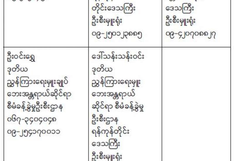 နိုင်ငံတော်ဝန်ကြီးချုပ်၏ ပြည်တွင်းခရီးစဉ်တွင် လိုက်ပါလာသော သယံဇာတနှင့် သဘာဝပတ်ဝန်းကျင် ထိန်းသိမ်းရေးဝန်ကြီးဌာန ပြည်ထောင်စုဝန်ကြီး ဦးခင်မောင်ရီသည် ယနေ့နံနက်ပိုင်းက ရှမ်းပြည်နယ် (တောင်ပိုင်း) တောင်ကြီးမြို့ရှိ သစ်တောဦးစီးဌာနရုံး အစည်းအဝေးခန်းမတွင် ဝန်ကြီးဌာနအောက်ရှိ သစ်တောကဏ္ဍ၊ ပတ်ဝန်းကျင် ထိန်းသိမ်းရေးကဏ္ဍ၊ သတ္တုရေးရာကဏ္ဍမှ ပြည်နယ်အဆင့်၊ ခရိုင်အဆင့် တာဝန်ခံများနှင့် တွေ့ဆုံသည်။