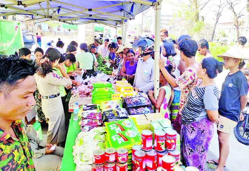 ဆိုင်ကလုန်းမုန်တိုင်း (မိုခါ)တိုက်ခတ်မှုကြောင့် ပျက်စီးဆုံးရှုံးမှုများဖြစ်ပေါ်ခဲ့သည့် စစ်တွေမြို့ရှိ မုန်တိုင်းဒဏ်သင့် ဒေသခံပြည်သူများနှင့် ဌာနဆိုင်ရာဝန်ထမ်းများ၏ စားသောက်ရေး အဆင်ပြေစေရန်နှင့် မိမိတို့အလိုရှိရာ စားသောက် ကုန်ပစ္စည်းများကို ဈေးနှုန်း သက်သာစွာဖြင့် ဝယ်ယူ စားသောက်နိုင်ရေးအတွက် အနောက်ပိုင်းတိုင်း စစ်ဌာနချုပ် နယ်မြေခံတပ်မတော်သားများနှင့် တာဝန်ရှိသူများက ယနေ့တွင် စစ်တွေမြို့ ဦးဥတ္တမပန်းခြံ၌